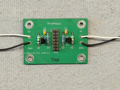 It contans two pre-amplifiers identical to those on the PMS Base board. and should be placed below the bottom (coil) plane of the pendulum and be connected to capacitive Center Pass and/or Rim electrodes.