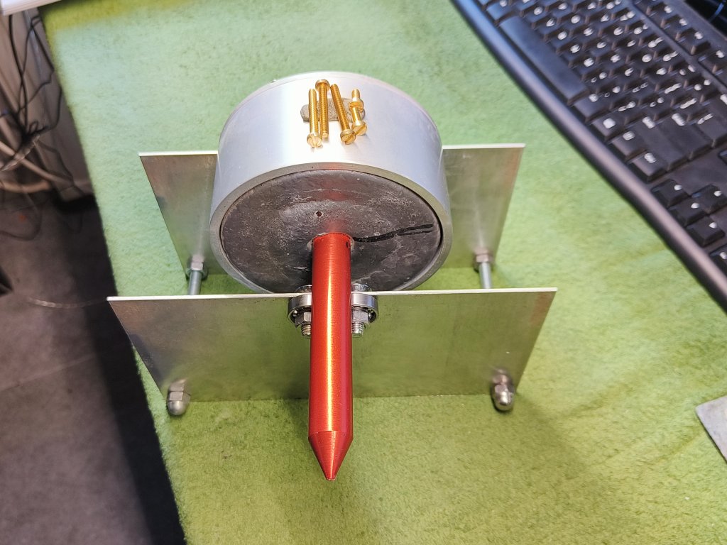 I mounted an AH35 analog magnetic field sensor (~1€ /pc) to a non magnetic bar and placed it at X = 8 mm and Z = -8 mm w.r.t. the tip of the bob. This is approximately the position where the wires of the drive coil sit. I rotated the bob to 8 positions and found a peak-to-peak deviation of 3% in the fieldstrength.