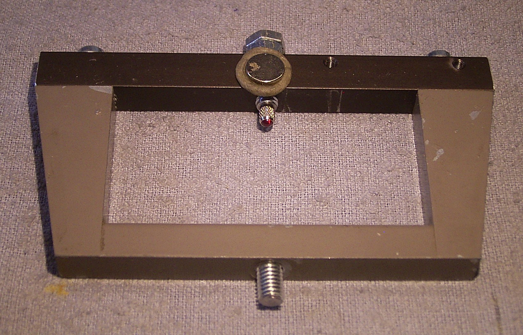 The feeler is mounted to the black rod, the pendulum wire is connected to the gray handle.