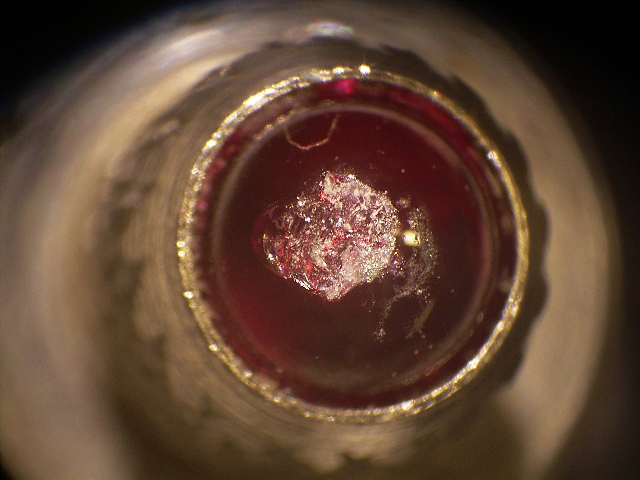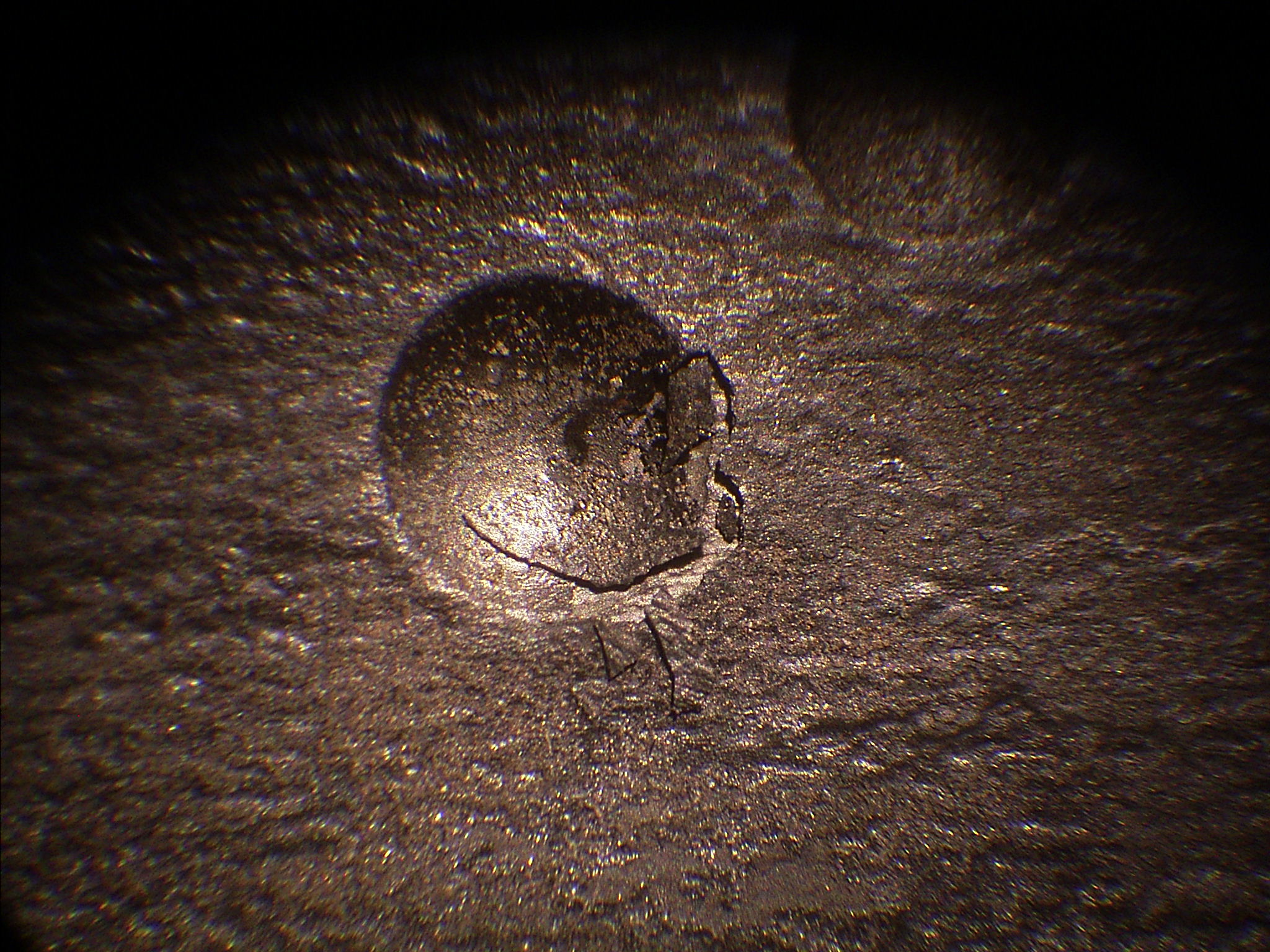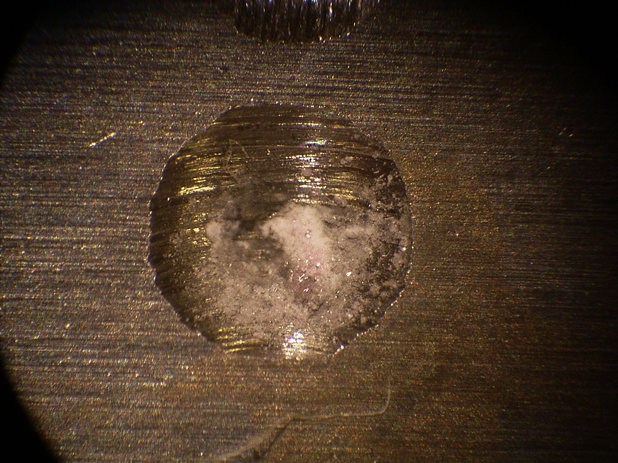Next an experiment was done with a piece of chisel steel in which a small pit was made with a Dremel diamond drill.