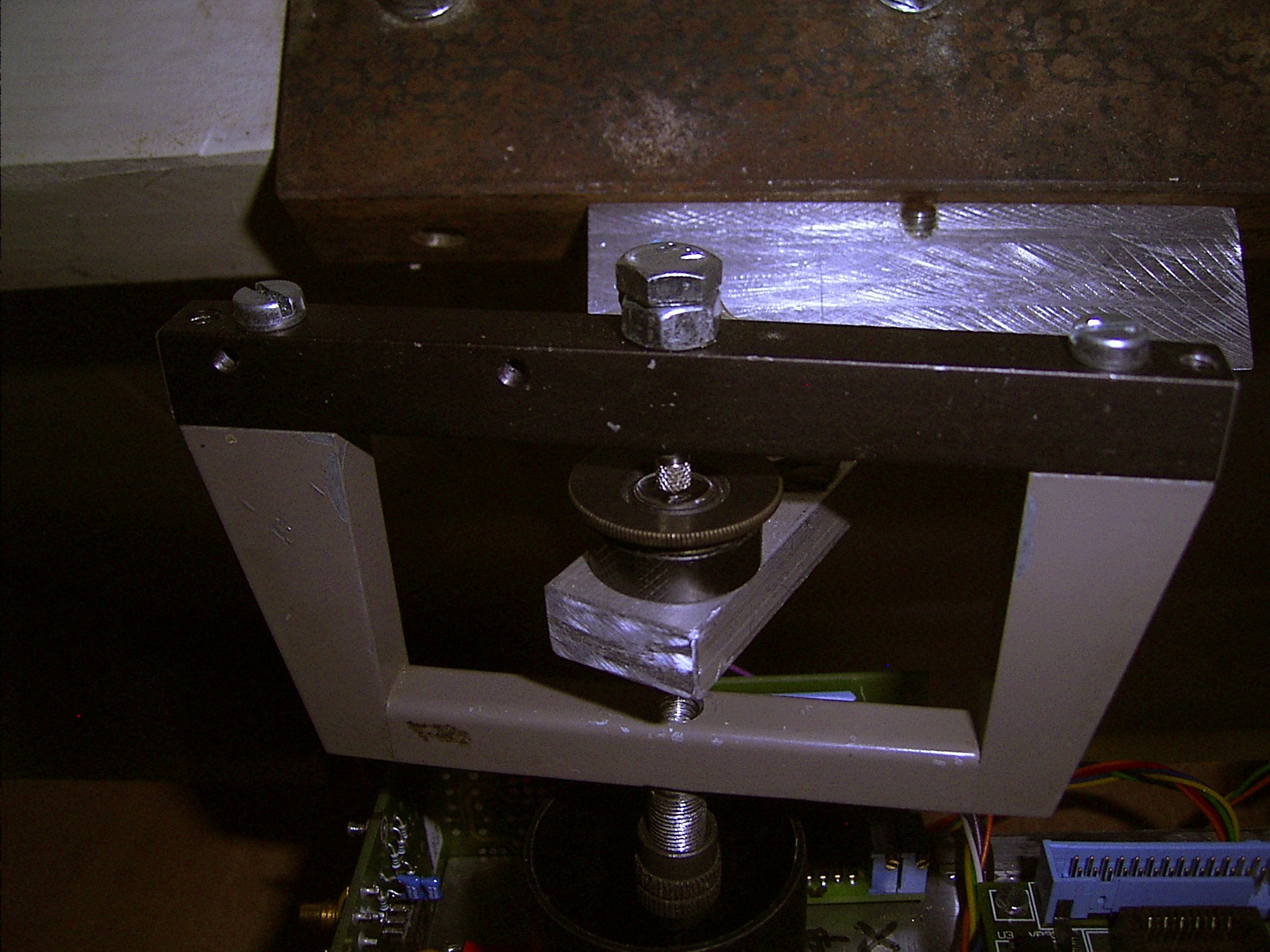 Note: In this picture some electronic things are visible. In the early days I had an arrangement of two optical line sensors and leds arranged perpendicular, such that the cable made a shadow on the line sensors. With this I could measure the movements of the cable. This system was later abandoned and replaced by the magnet and Hall sensor system.