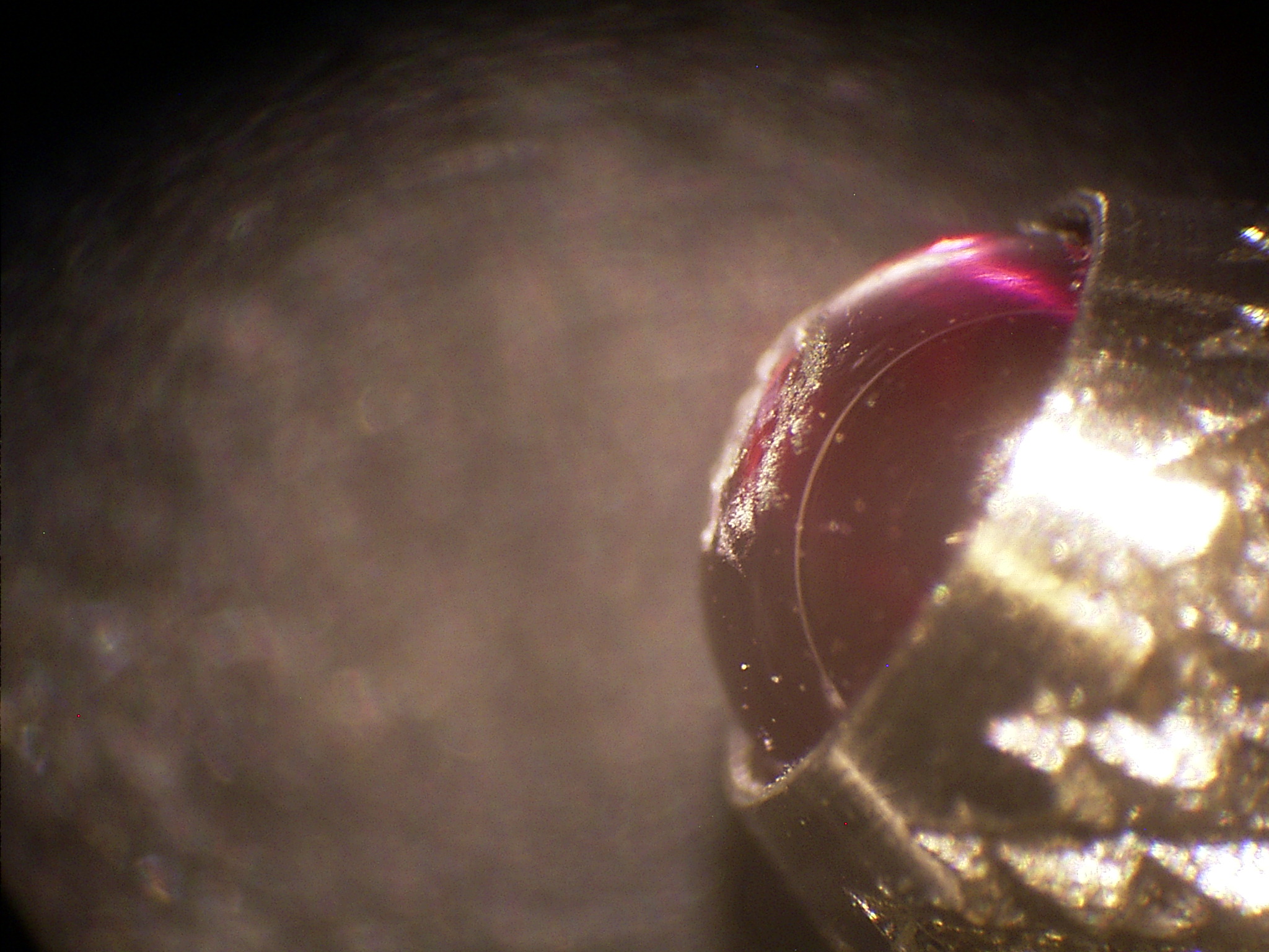 The one-point bearing rested on a piece of a microscope oculair that had a concave lens.