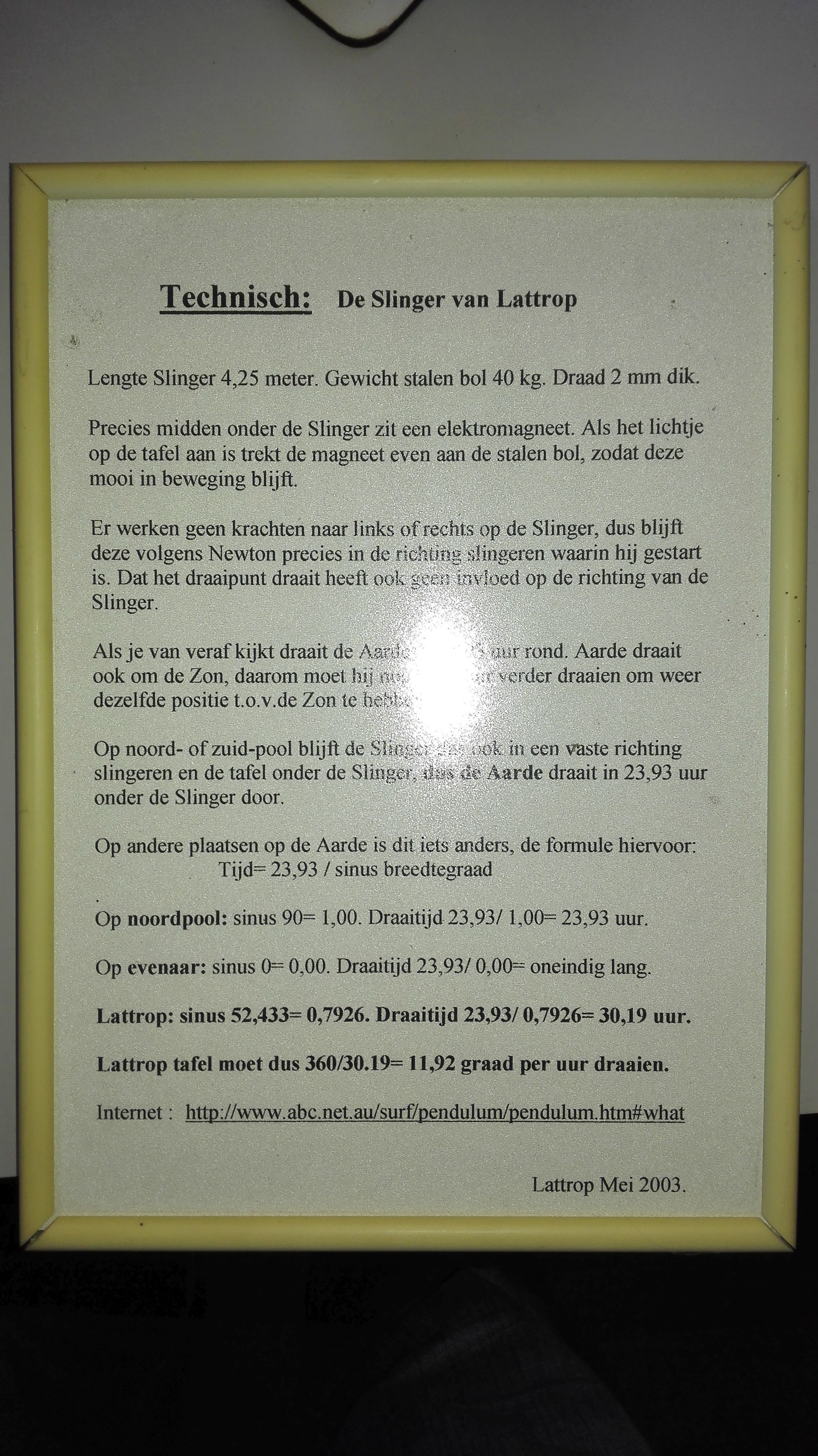 Lattrop, Cosmos observatory. This pendulum was made by Piet van der Hoeven. He also made the pendulum in Oldenzaal.