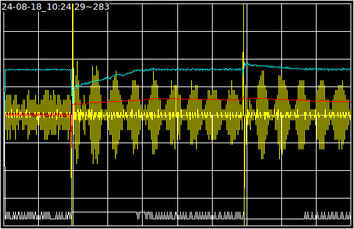 The red trace is the peak signal from the Center coil. Before the test there was an amount of ellipticity, so that signal was lower. Relaunching the bob has set the ellipticity to almost zero, so we have more signal from the center coil.